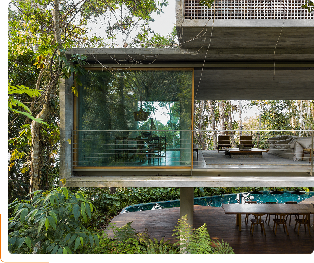 Nossas soluções em madeira e sistemas híbridos nascem de um processo técnico rigoroso e da colaboração próxima com arquitetos, garantindo qualidade e coerência com o conceito do projeto.