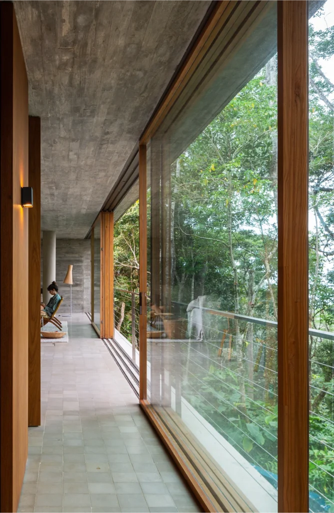 Esquadrias minimalistas que combinam madeira no interior e alumínio no exterior, garantindo um visual sofisticado, baixa manutenção e alta performance térmica.